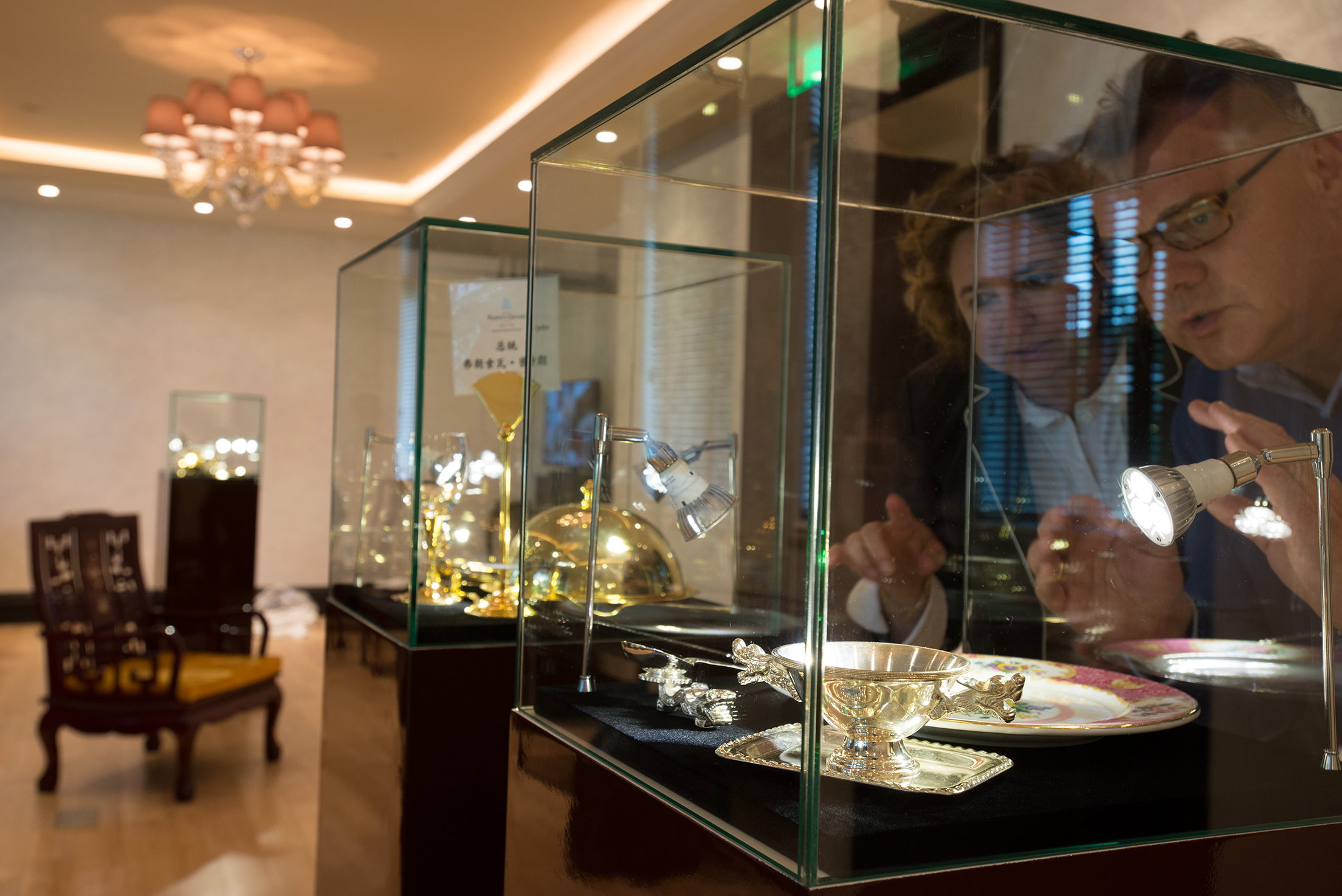 Andreas and Carola Augustin are checking one of the showcases they had set up at the new museum of the People’s Grand Hotel Sofitel Legend Xian in China.